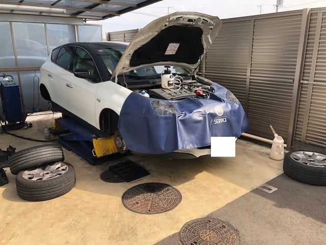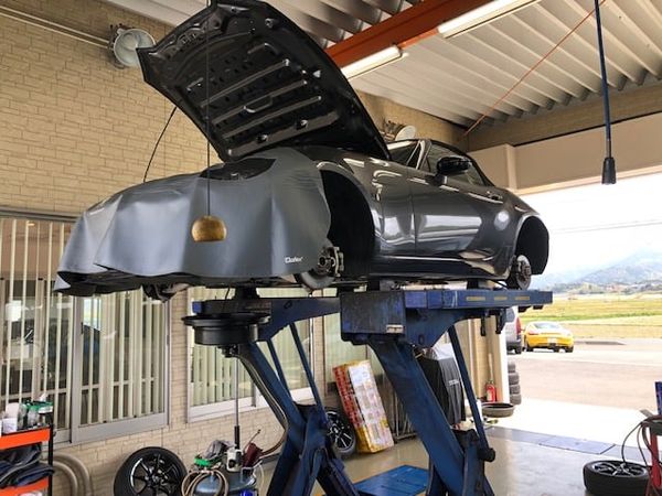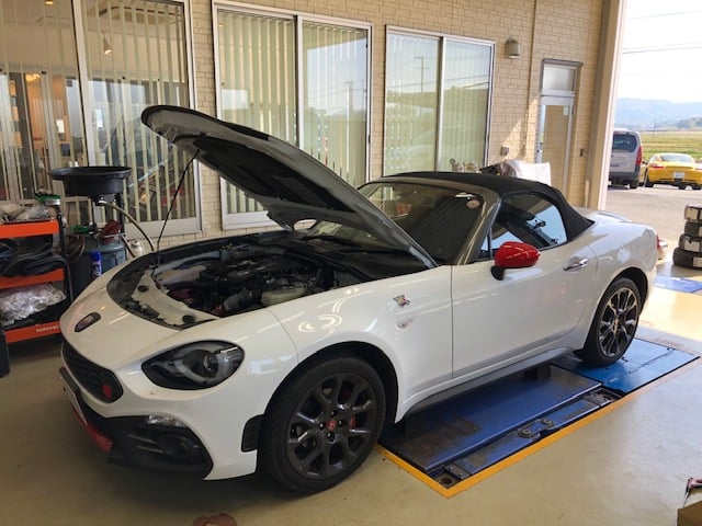 ABARTH124は車検入庫です。まずは全体チェックから、下からタイミングベルトの点検が出来ます。大きな問題はなさそうです。
