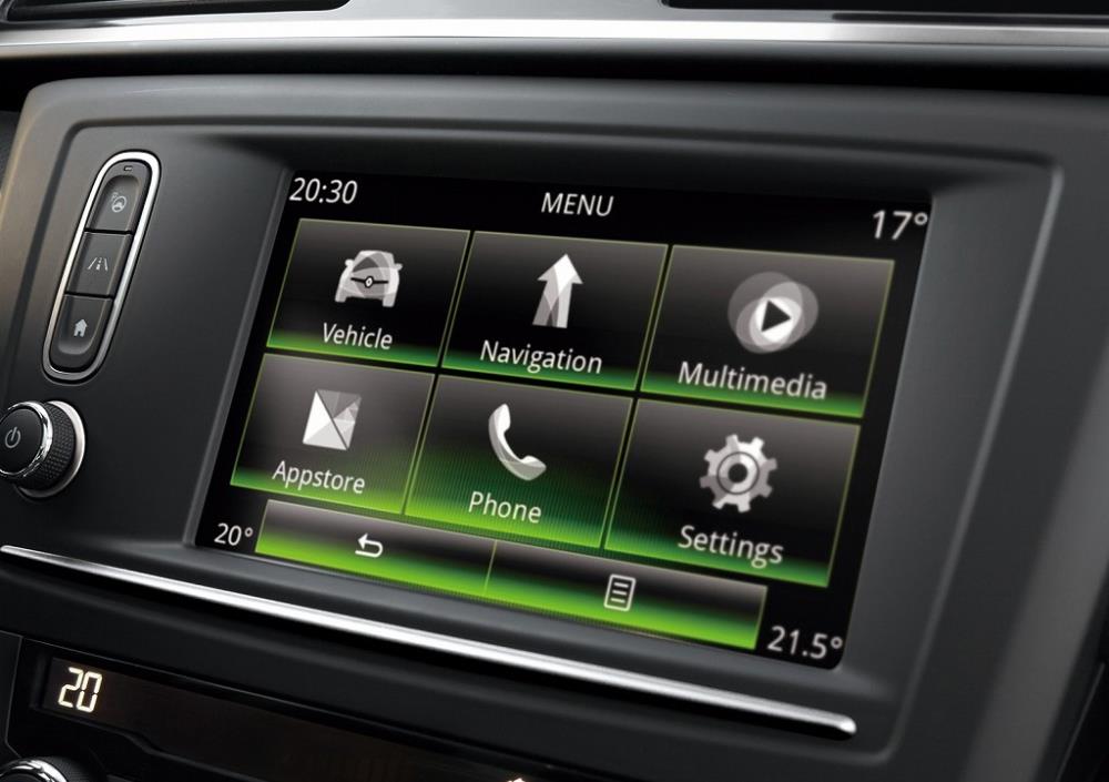 ルノー R-Link2は、センターコンソールの7インチマルチファンクションタッチスクリーンで、マルチメディア操作や車両をコントロールするシステムを採用。