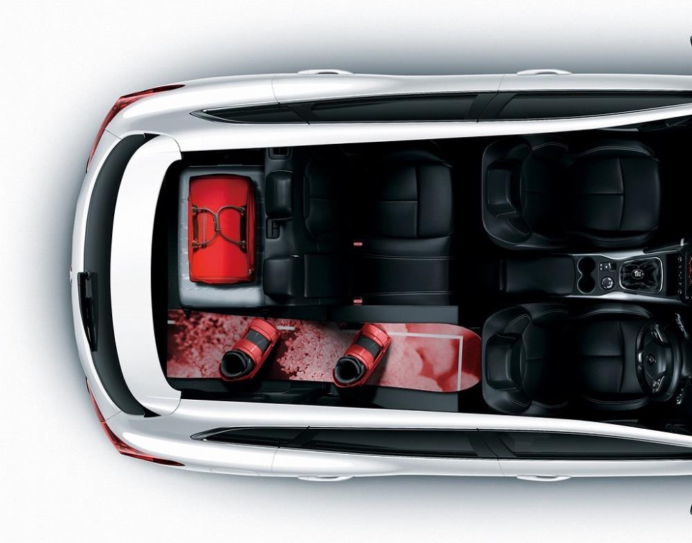 6:4分割可倒式リアシートは、ラゲッジ両サイドにあるハンドルを引くと、それぞれ別々に倒すことができる。また2枚のラゲッジボードを用いることで、乗車人数や荷物の量に合わせて最適なスペースを作り出せる。