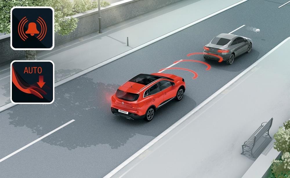 ルノー カジャーには、2台のカメラ、12個のセンサー、そしてミリ波レーダーで車両の周辺状況をリアルタイムで分析し、安全なドライブをサポートする、運転支援システム(ADAS)が搭載されている。この運転支援システム(ADAS)は、R-Link2で設定・操作でき、LWD(車線逸脱警報)、BSW(後側方車両検知警報)、オートハイ/ロービーム、エマージェンシーブレーキサポート(アクティブブレーキ)、イージーパーキングアシストが備わる。