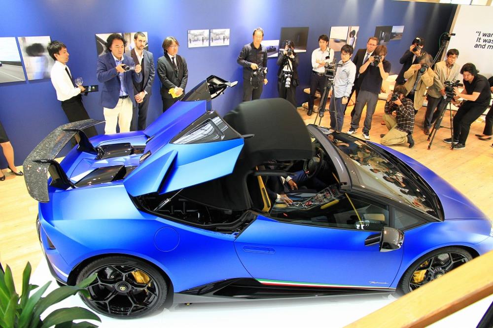 アウトモビリ・ランボルギーニ・ジャパンは5月28日、都内でウラカン スパイダーのハイパフォーマンスモデル『ウラカン ペルフォルマンテ スパイダー』を日本初公開した。
